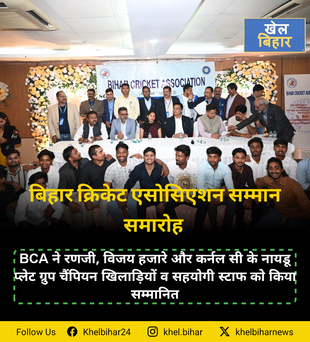 BCA ने रणजी,विजय हजारे और कर्नल सी के नायडू प्लेट ग्रुप चैंपियन खिलाड़ियों व स्टाफ को किया सम्मानित