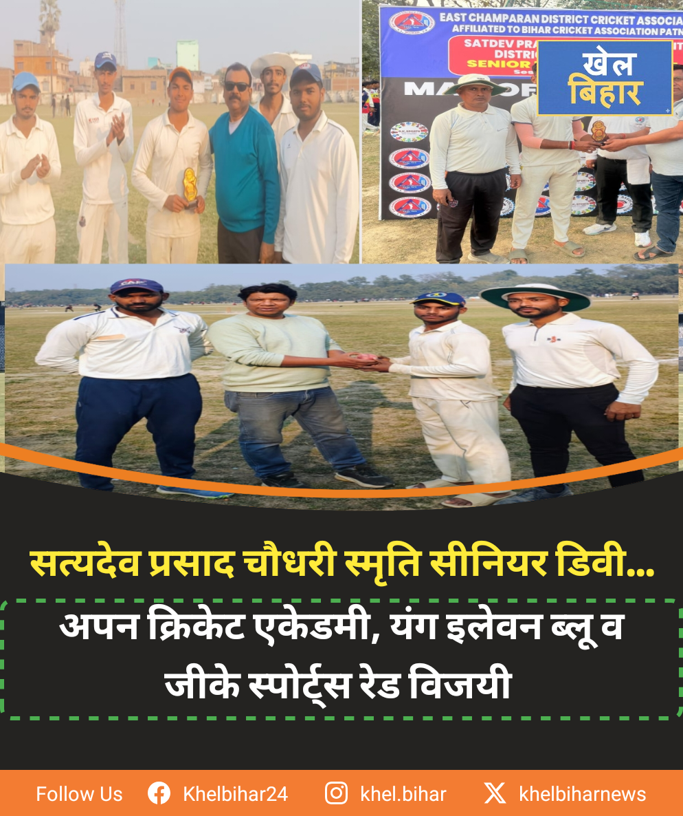 ईस्ट चम्पारण जिला क्रिकेट लीग में अपन क्रिकेट एकेडमी, यंग इलेवन ब्लू व जीके स्पोर्ट्स रेड विजयी