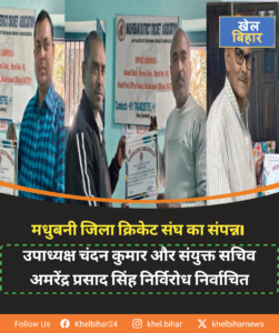 मधुबनी जिला क्रिकेट संघ के उपाध्यक्ष एवं संयुक्त सचिव पद का चुनाव सम्पन्न।