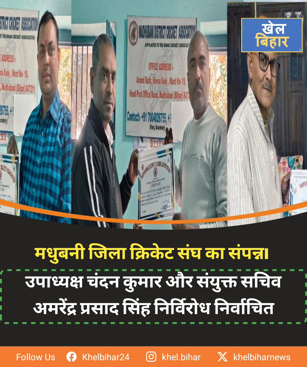 मधुबनी : दिनांक 25.01.2026 दिन रविवार को मधुबनी जिला क्रिकेट संघ की विशेष आम सभा…