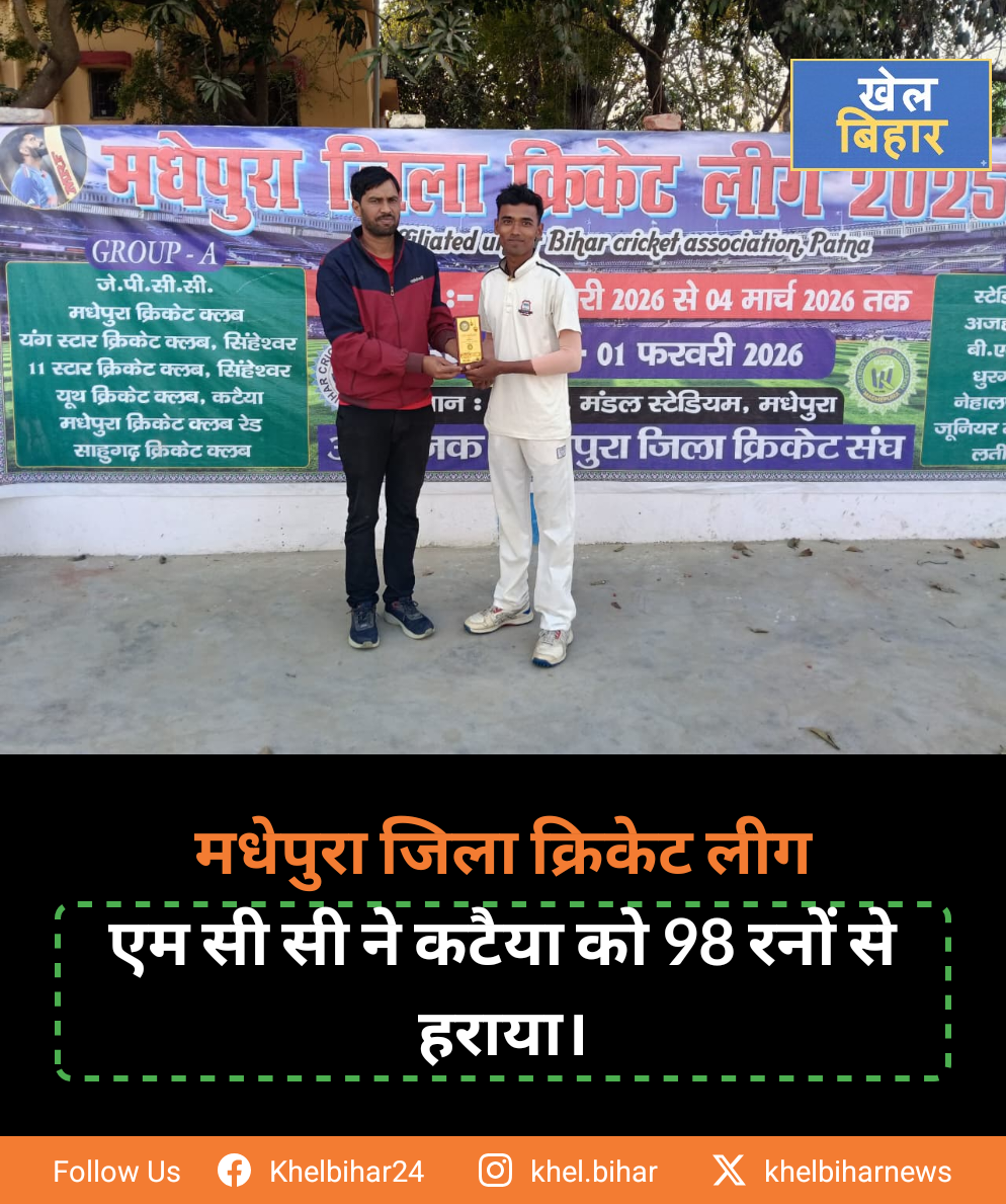 मधेपुरा जिला क्रिकेट लीग में एम सी सी ने कटैया को 98 रनों से हराया।