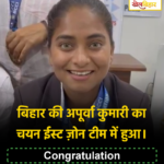 बिहार की क्रिकेटर अपूर्वा कुमारी का चयन ईस्ट ज़ोन टीम में हुआ, BCA अध्यक्ष हर्षवर्धन ने दी बधाई