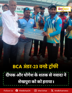 BCA अंडर-23 वनडे ट्रॉफी : मुंगेर ने लखीसराय को 6 विकेट से हराया।
