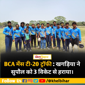 बीसीए मेंस टी-20 ट्रॉफी : रोमांचक मुकाबले में लखीसराय ने मुंगेर को 11 रनों से हराया।
