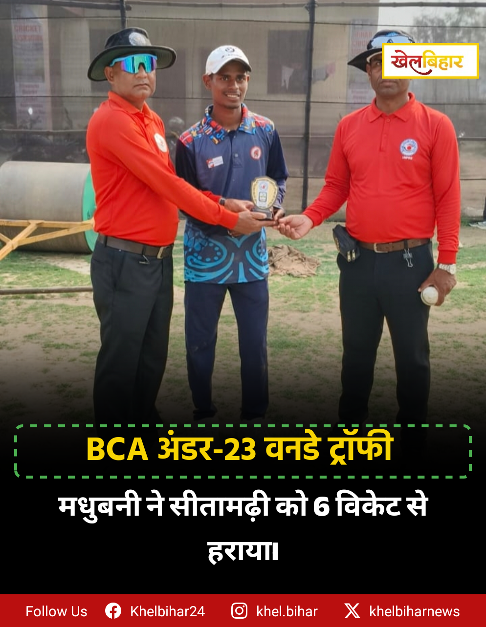 डीसीसी सीतामढ़ी जिला क्रिकेट लीग के फाइनल में, एक खिलाडी पर जिला क्रिकेट संघ ने लगाया बैन