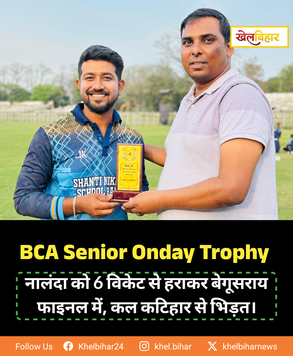 मैच में अंपायरिंग बीसीए पैनल के अंपायर पटना के आशुतोष कुमार व मुजफ्फरपुर के सचिन कुमार ने और स्कोरिंग बीसीए से प्रशिक्षित आर्यन पटेल व निखिल कुमार ने किया।
