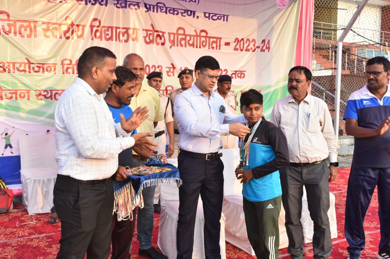 कला, संस्कृति एवं युवा विभाग एवं बिहार राज्य खेल प्राधिकर के संयुक्त तत्वावधान में जिला प्रशासन, पटना द्वारा आयोजित चार दिवसीय पटना जिला स्तरीय विद्यालय खेल प्रतियोगिता के समापन के अवसर पर मुख्य अतिथि के रूप में बिहार राज्य खेल प्राधिकरण के निदेशक-सह-सचिव श्री पंकज कुमार राज, भा.पु.से. ने विजेता खिलाड़ियों एवं टीमों को मेडल एवं ट्राॅफी प्रदान किया। इस अवसर पर क्रीडा कार्यपालक श्री राजेन्द्र कुमार, जिला खेल पदाधिकारी, पटना श्री ओम प्रकाश, एन.आई.एस एथलेटिक्स प्रशिक्षक श्री अभिषेक कुमार, मनोज कुमार, सुदर्शन कुमार, अशोक कुमार सहित गणमान्य लोग उपस्थित थे।