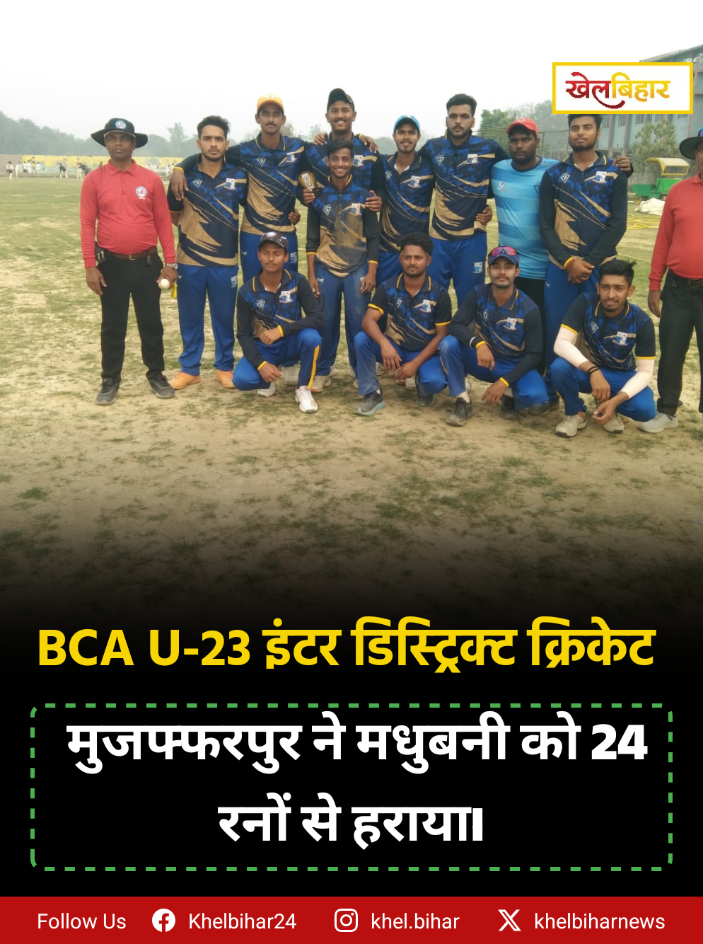 मधुबनी जिला क्रिकेट लीग में नारायनपट्टी क्रिकेट क्लब, नारायनपट्टी 8 विकेट से जीता।