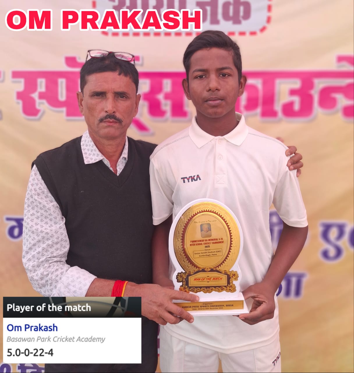 बसावन पार्क क्रिकेट एकेडमी व जीसीए सीनियर परमेश्वर राय अंडर-15 क्रिकेट टूर्नामेंट के क्वार्टरफाइनल में