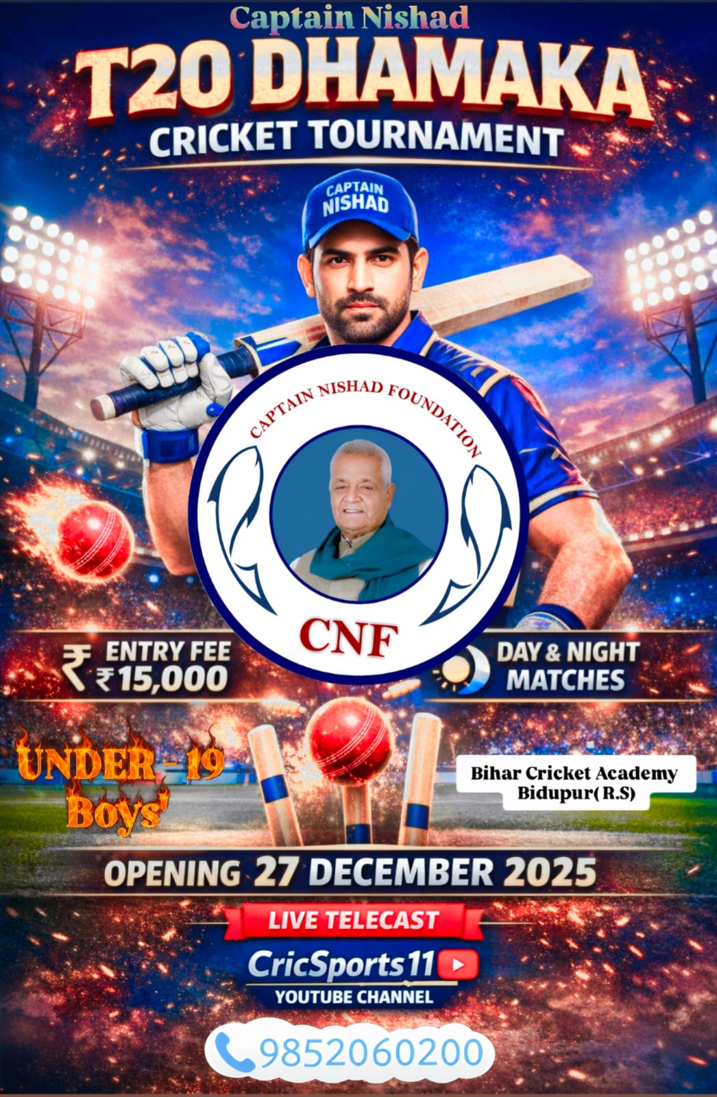 कैप्टन निषाद टी -20 धमाका क्रिकेट टूर्नामेंट का आयोजन 27 दिसंबर से, भाग लेने के लिए संपर्क करे