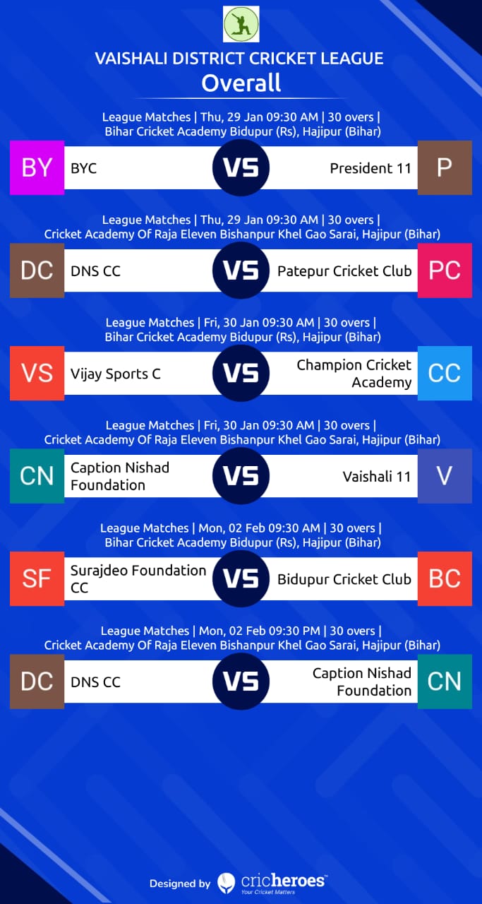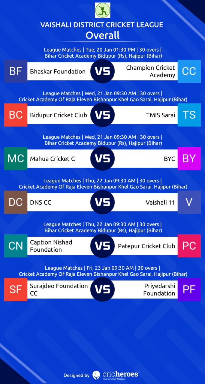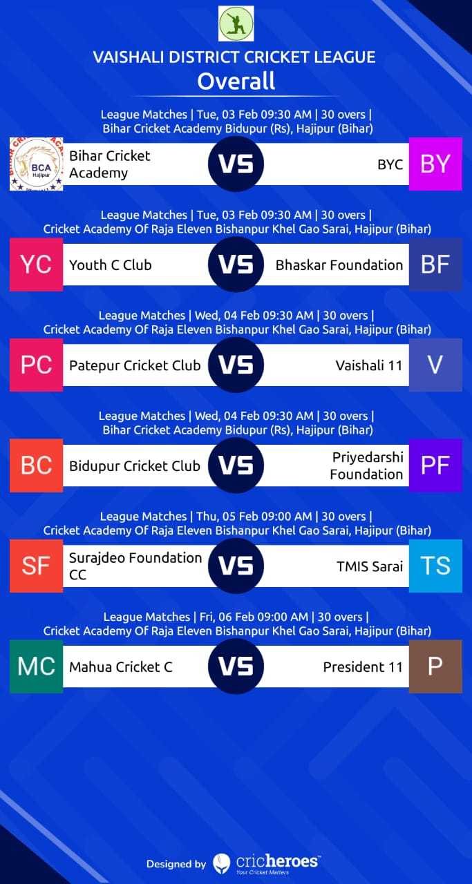 उद्घाटन मुकाबला बिहार क्रिकेट एकेडमी बिदुपुर के मैदान में फ्लडलाइट की रोशनी में खेला जाएगा। डे–नाइट फॉर्मेट में होने वाले इस मुकाबले को लेकर खिलाड़ियों और दर्शकों में खासा उत्साह देखा जा रहा है।