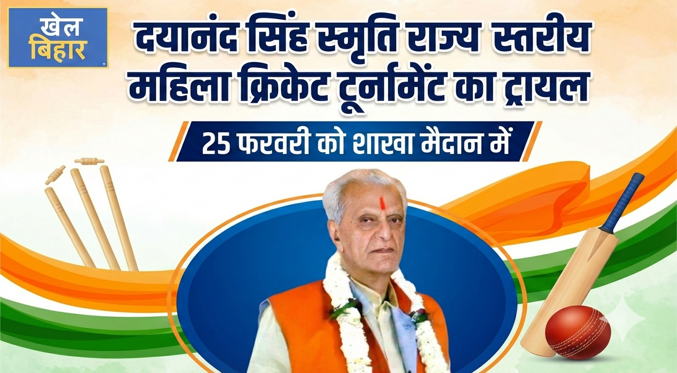 दयानंद सिंह स्मृति राज्य स्तरीय महिला क्रिकेट टूर्नामेंट का ट्रायल 25 फरवरी को शाखा मैदान पटना में