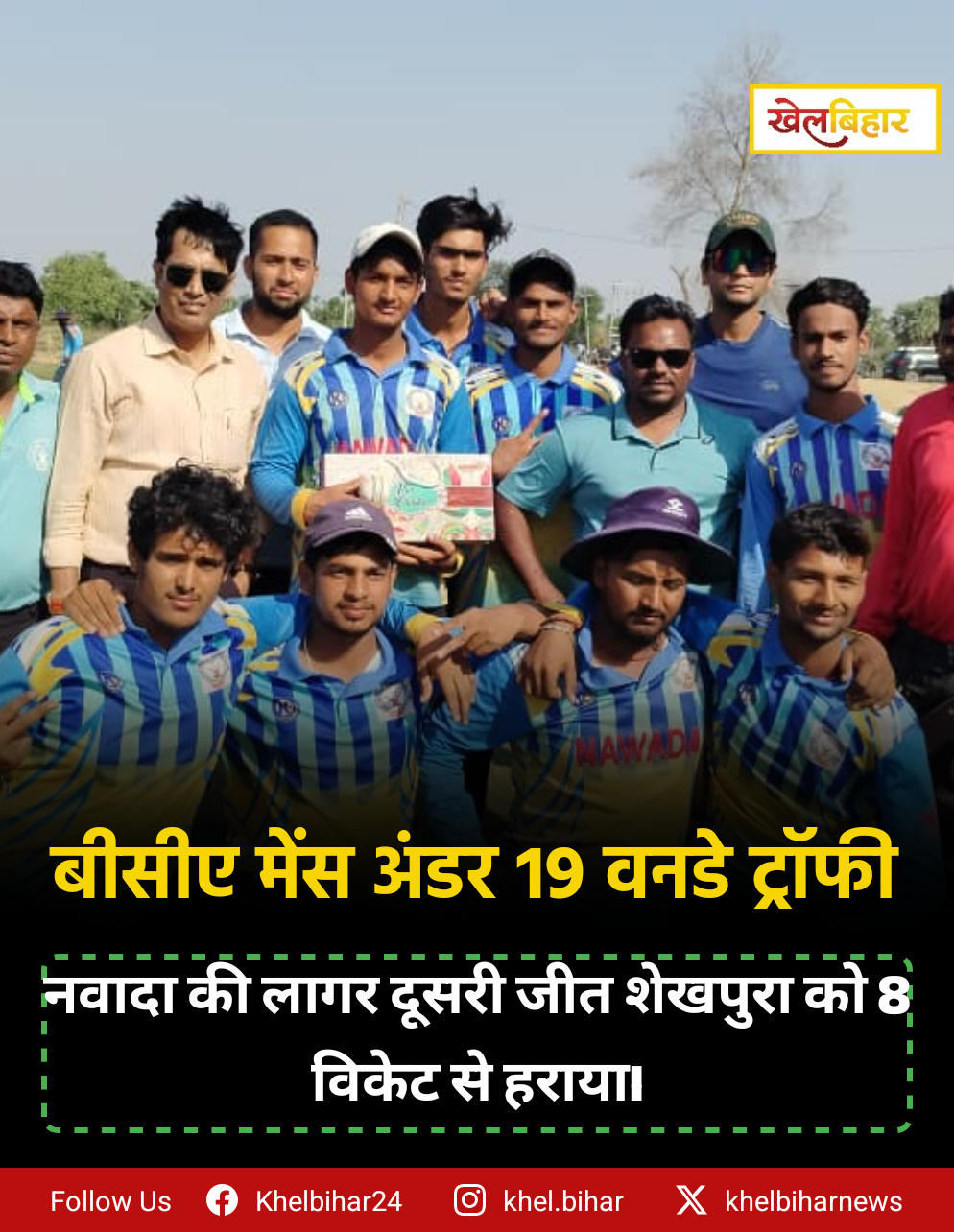 बीसीए मेंस अंडर-19 वनडे ट्रॉफी: नवादा की लागर दूसरी जीत शेखपुरा को 8 विकेट से हराया।