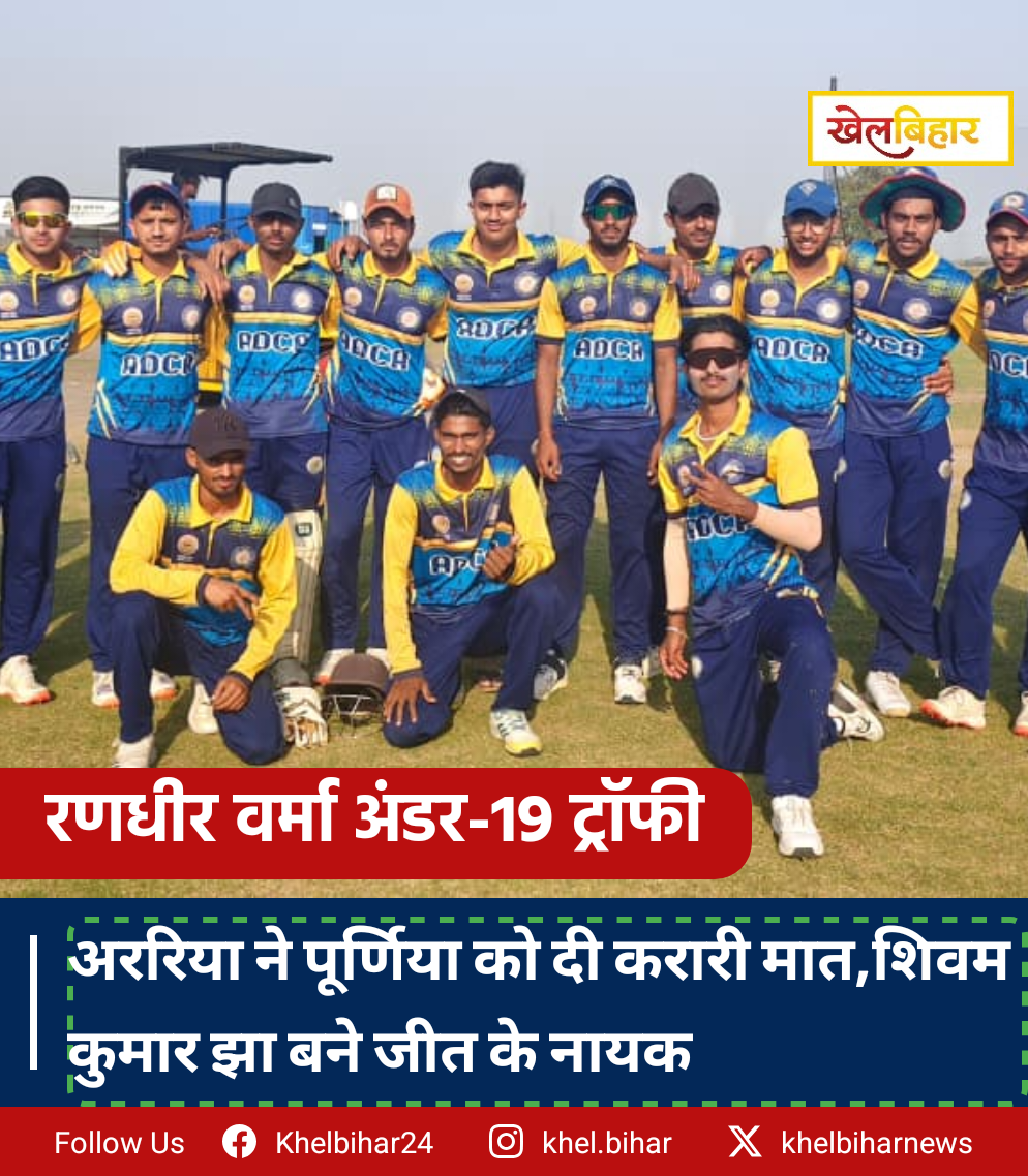 रणधीर वर्मा अंडर-19 ट्रॉफी: अररिया ने पूर्णिया को दी करारी मात,शिवम कुमार झा बने जीत के नायक
