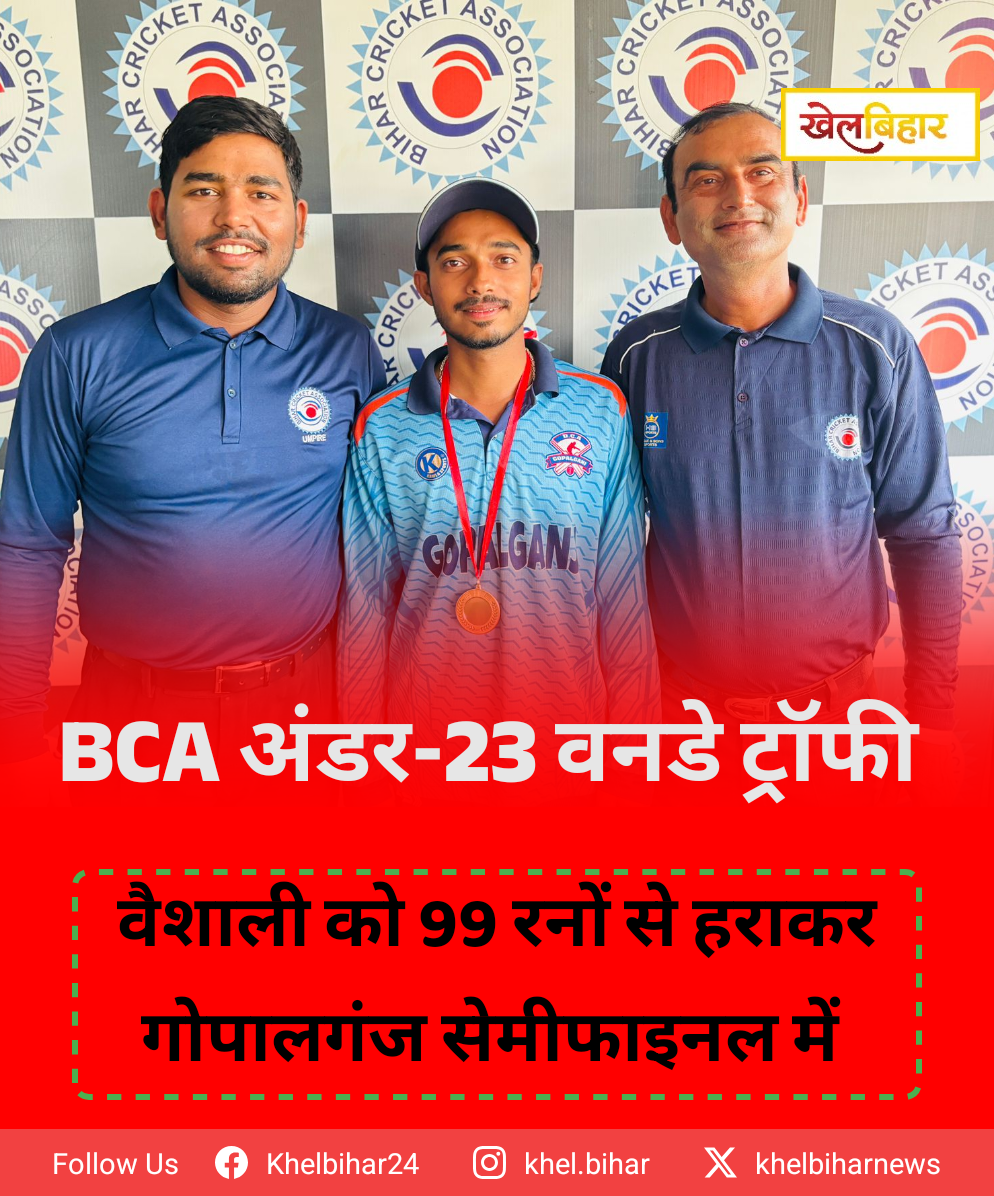 बीसीए मेंस अंडर-23 वनडे ट्रॉफी: वैशाली को हरा कर गोपालगंज की टीम सेमीफाइनल में