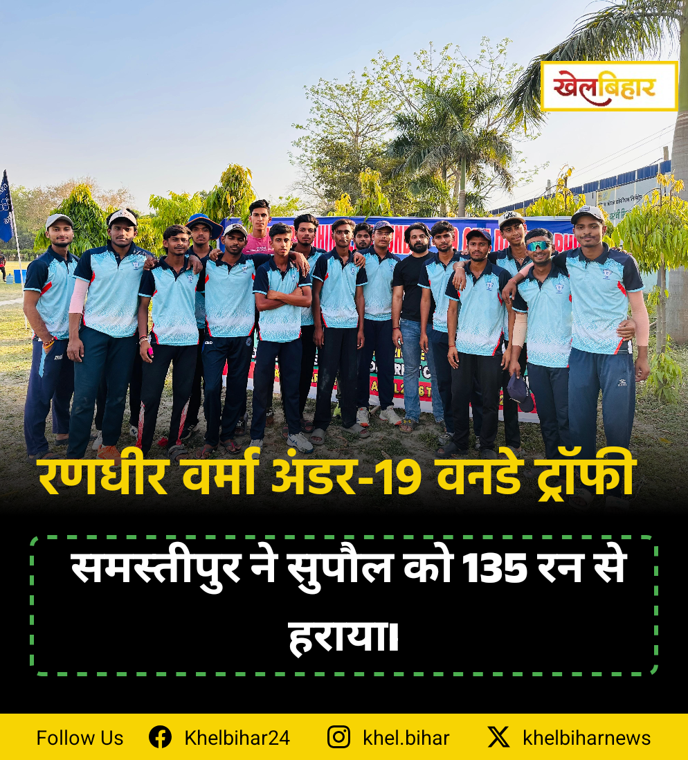 बीसीए मेंस अंडर-19 वनडे ट्रॉफी :समस्तीपुर ने सुपौल को 135 रन से हराया।