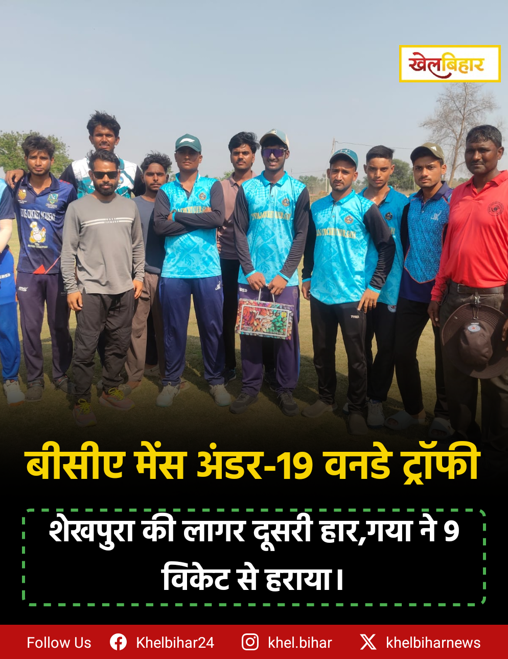 बीसीए मेंस अंडर-19 वनडे ट्रॉफी: शेखपुरा की लागर दूसरी हार,गया ने 9 विकेट से हराया।