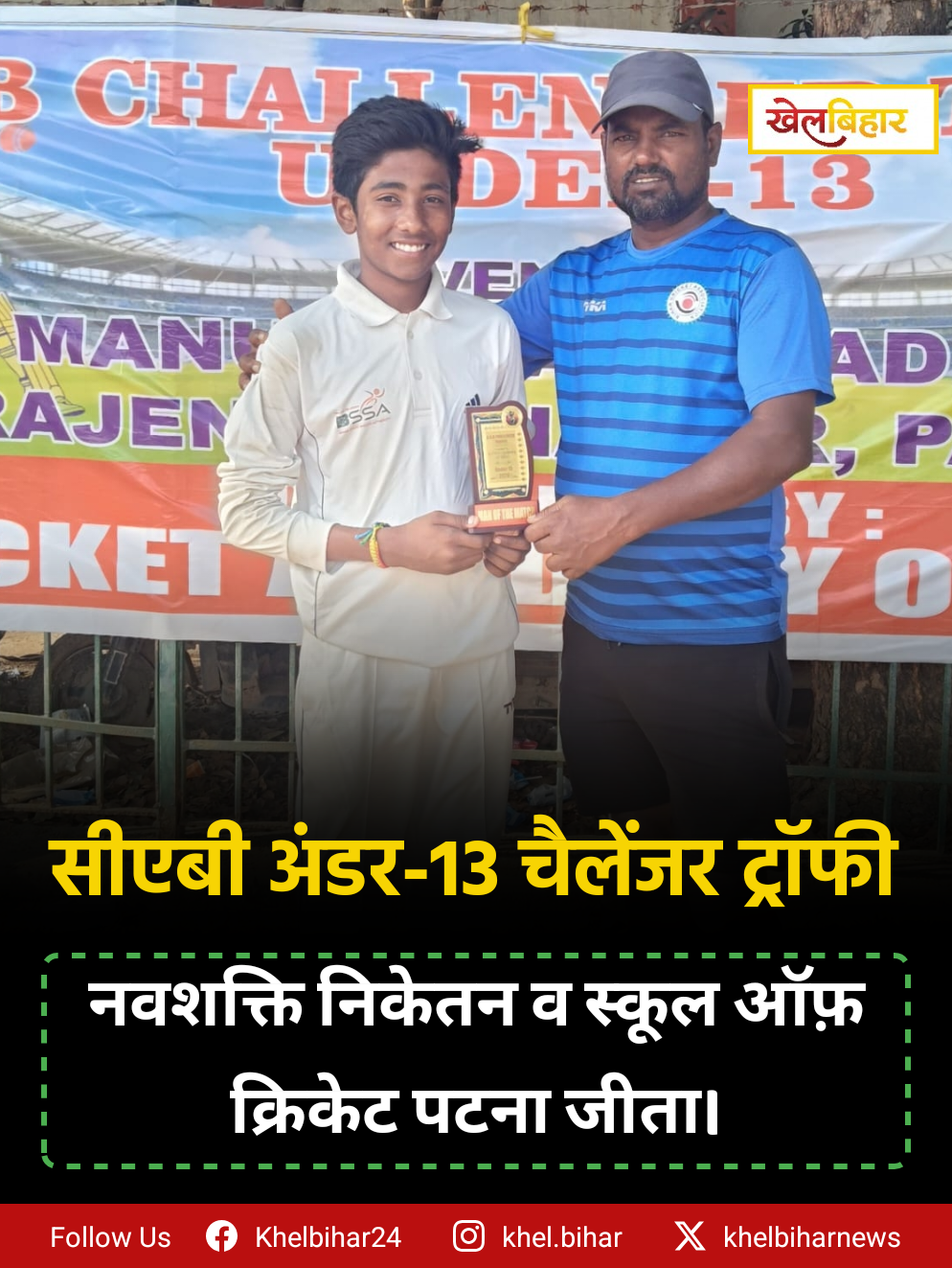 सीएबी अंडर-13 चैलेंजर ट्रॉफी: नवशक्ति निकेतन व मेंस्कूल ऑफ़ क्रिकेट पटना जीता।