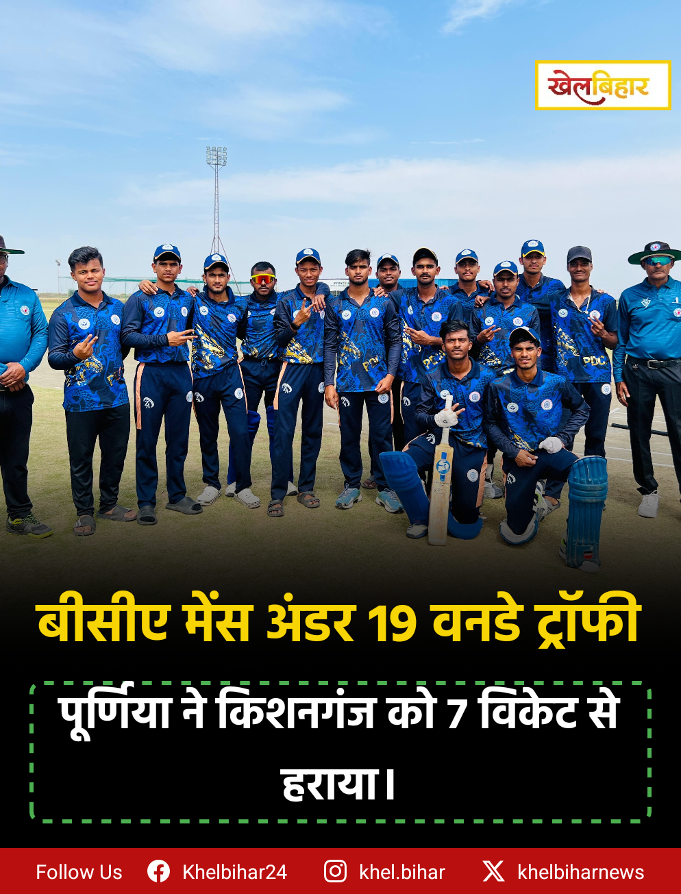 रणधीर वर्मा U-19 वनडे ट्रॉफी : पूर्णिया ने किशनगंज को 7 विकेट से हराया।