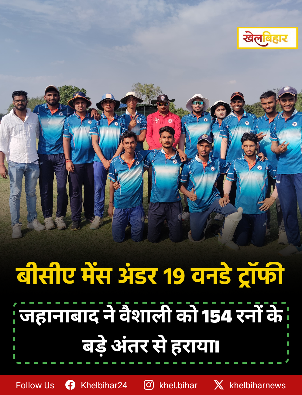 रणधीर वर्मा U19 वनडे ट्रॉफी: जहानाबाद ने वैशाली को 154 रनों के बड़े अंतर से हराया।