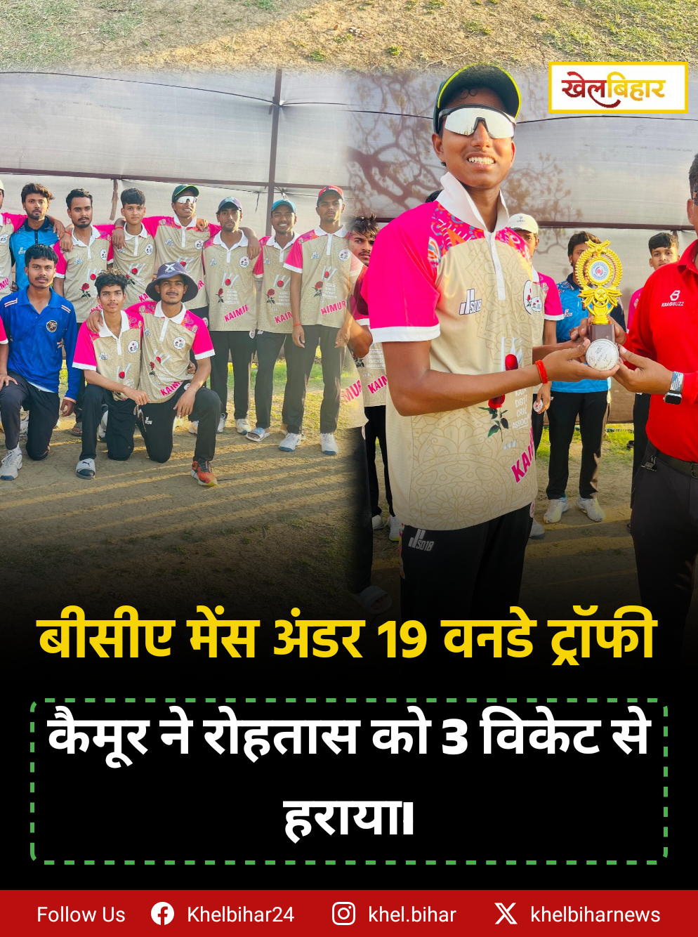 BCA अंडर-19 वनडे ट्रॉफी: कैमूर ने रोहतास को 3 विकेट से पराजित किया।