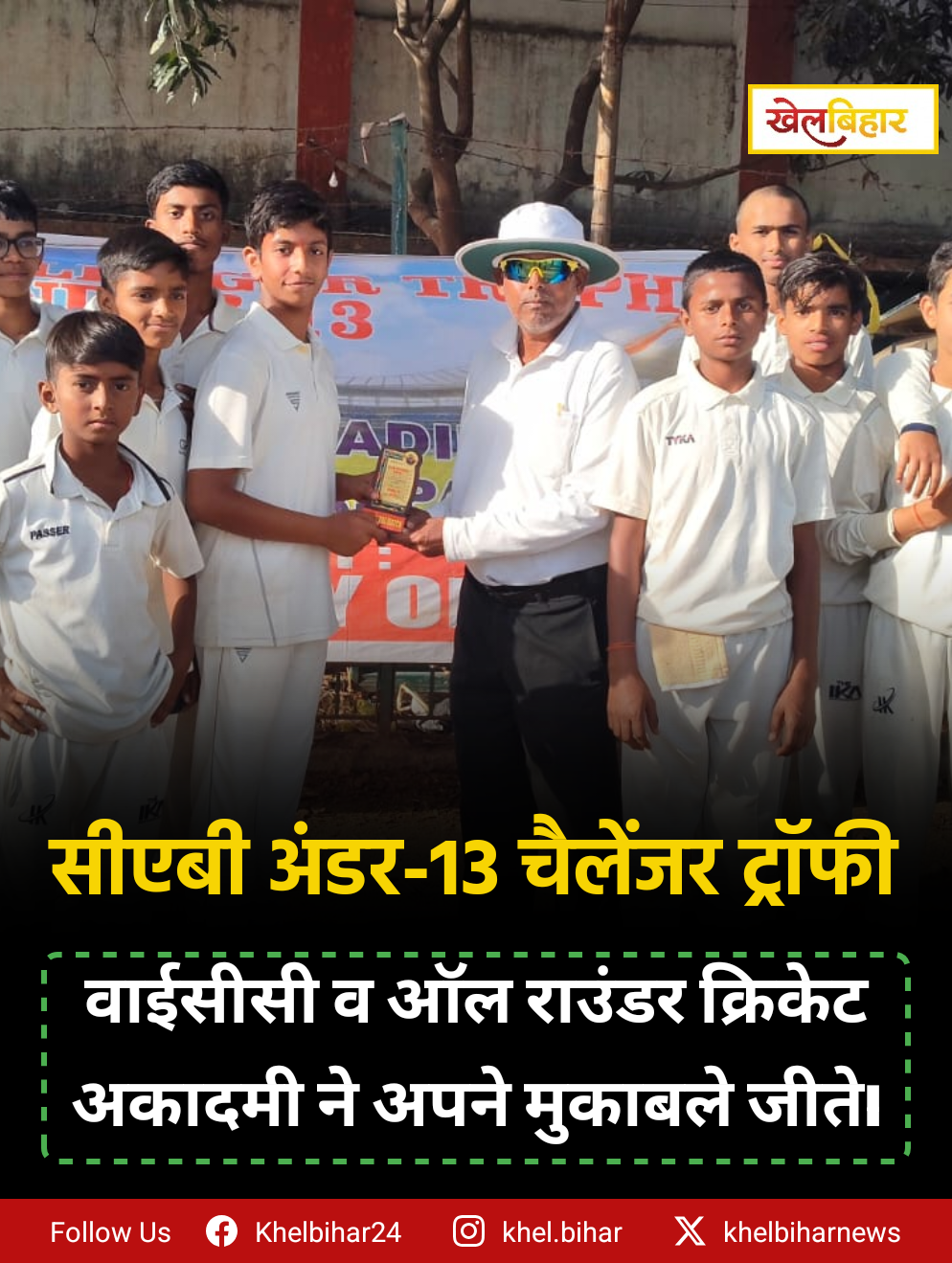 सीएबी अंडर-13 चैलेंजर ट्रॉफी: वाईसीसी व ऑल राउंडर क्रिकेट अकादमी ने अपने मुकाबले जीते