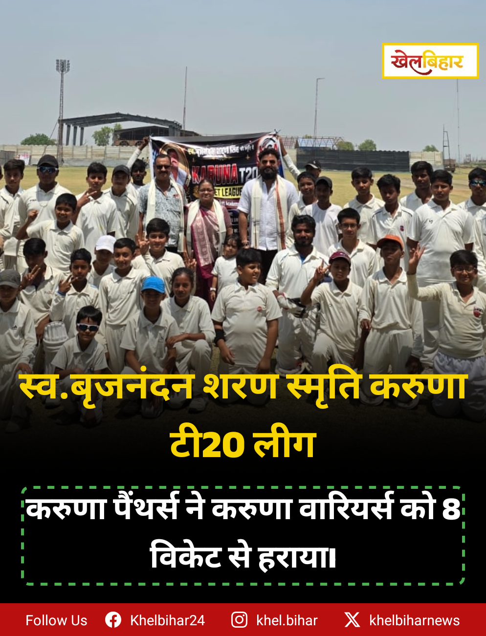 स्व.बृजनंदन शरण स्मृति करुणा टी20 लीग में करुणा पैंथर्स ने करुणा वारियर्स को 8 विकेट से हराया