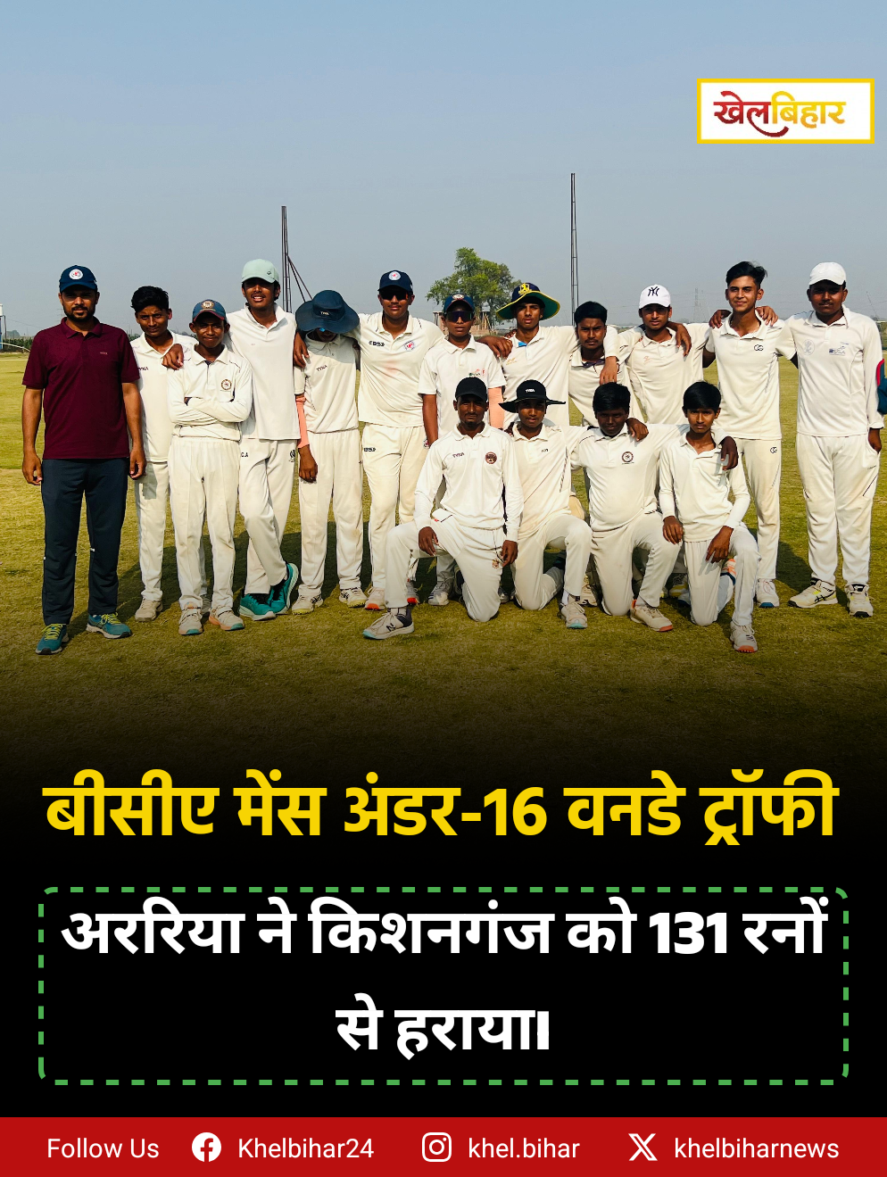 बीसीए मेंस अंडर-16 वनडे ट्रॉफी: खगड़िया ने सुपौल को 4 विकेट से हराया।