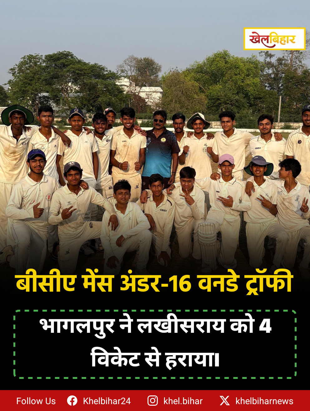 श्यामल सिन्हा U-16 वनडे ट्रॉफी: भागलपुर ने लखीसराय को 4 विकेट से हराया।