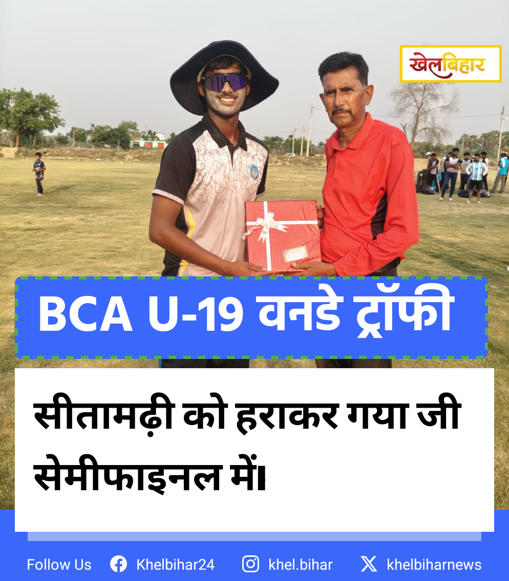 बीसीए मेंस अंडर-19 वनडे ट्रॉफी: सीतामढ़ी को हराकर गया जी सेमीफाइनल में।