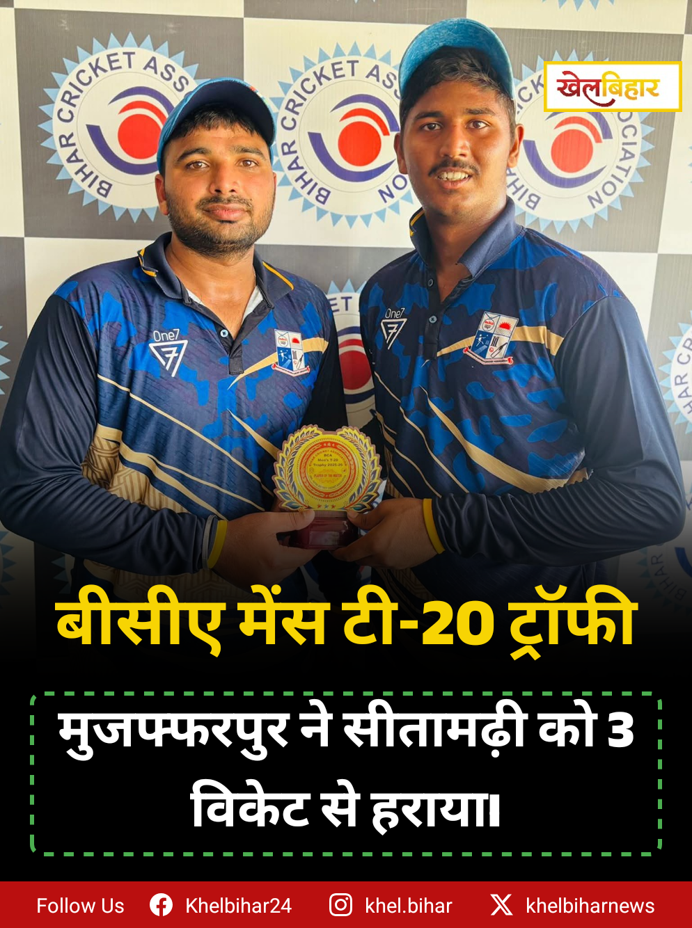 बीसीए मेंस टी-20 ट्रॉफी: मुजफ्फरपुर ने सीतामढ़ी को 3 विकेट से हराया।