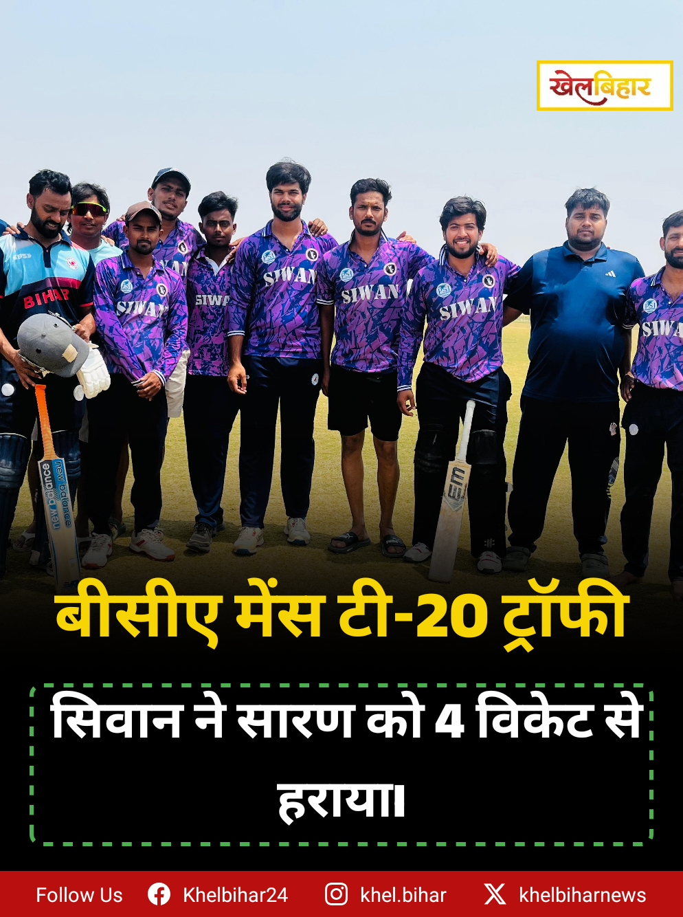 बीसीए मेंस टी-20 ट्रॉफी : सिवान ने सारण को 4 विकेट से हराया।