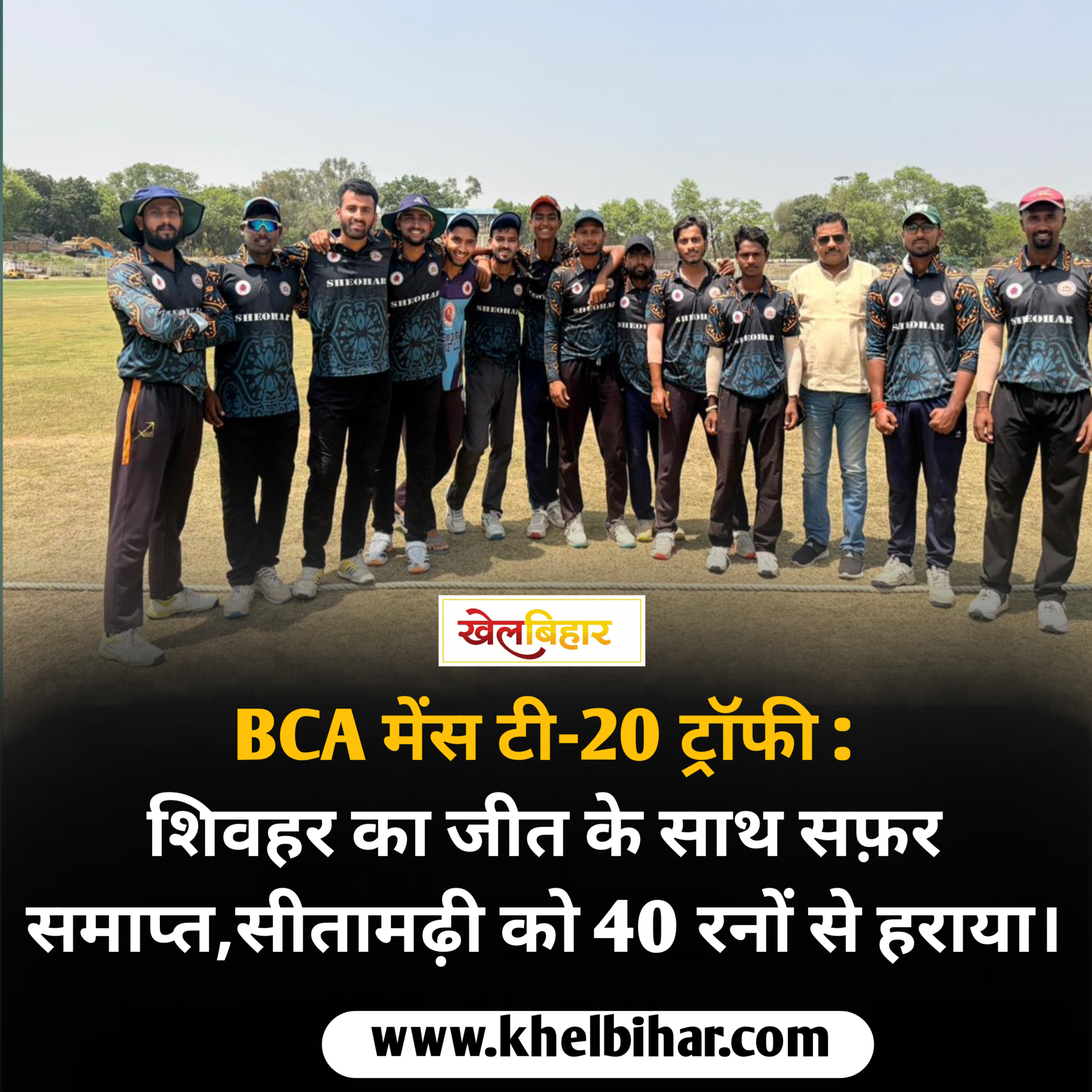 बीसीए मेंस टी-20 ट्रॉफी: शिवहर ने सीतामढ़ी को 40 रनों से हराया।