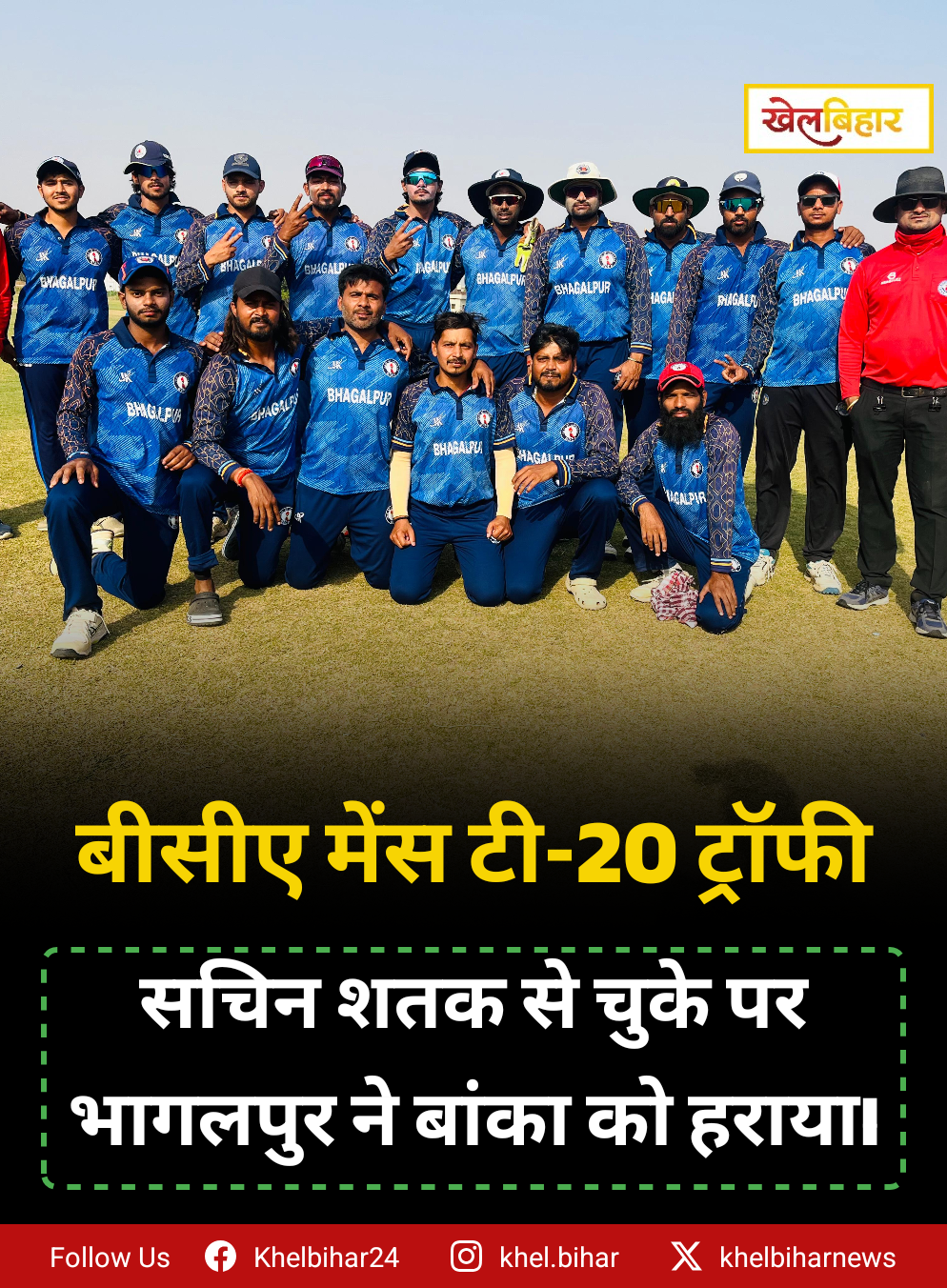 बीसीए मेंस टी-20 ट्रॉफी : सचिन शतक से चुके पर भागलपुर ने बांका को हराया।