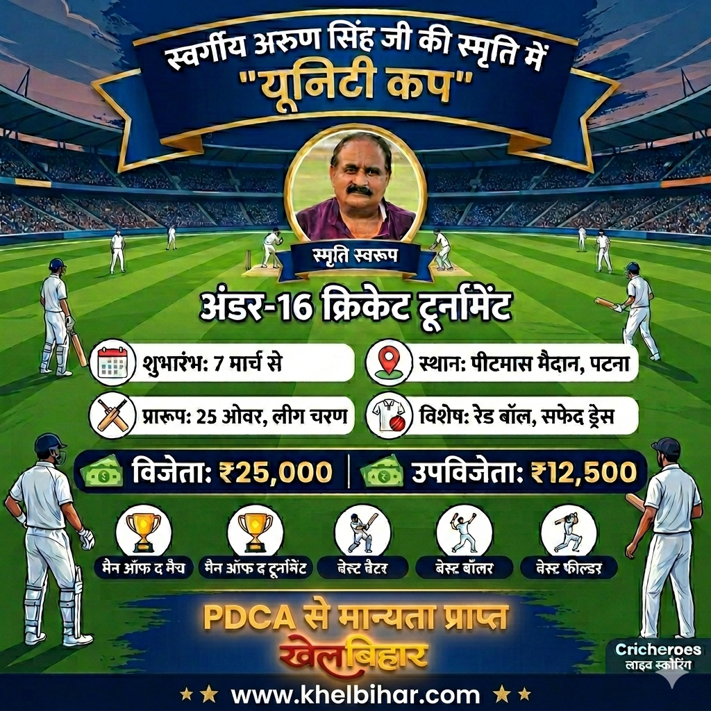पटना: राजधानी पटना में स्वर्गीय अरुण सिंह जी की स्मृति में आयोजित “यूनिटी कप” अंडर-16…
