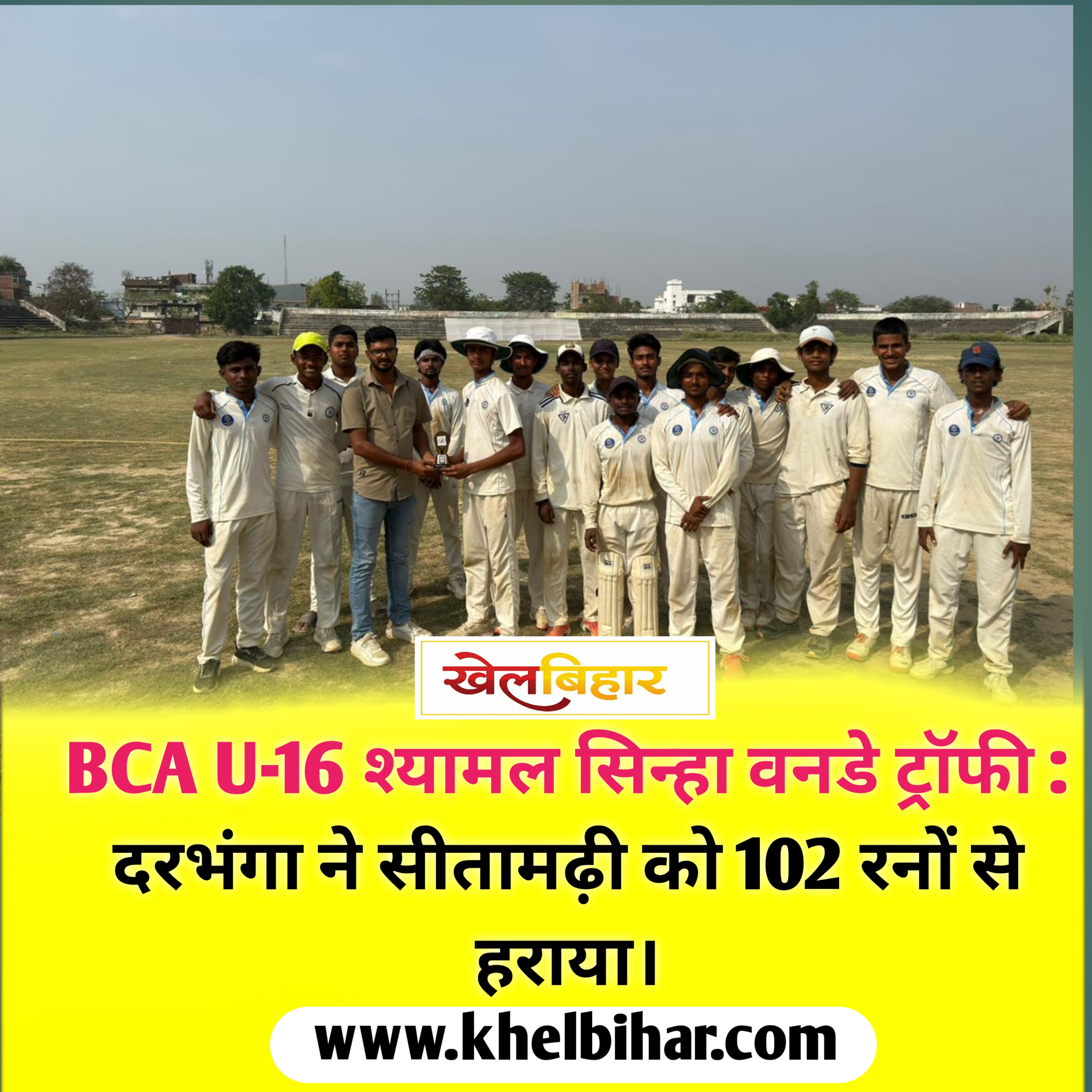 BCA U-16 श्यामल सिन्हा वनडे ट्रॉफी : दरभंगा ने सीतामढ़ी को 102 रनों से हराया।
